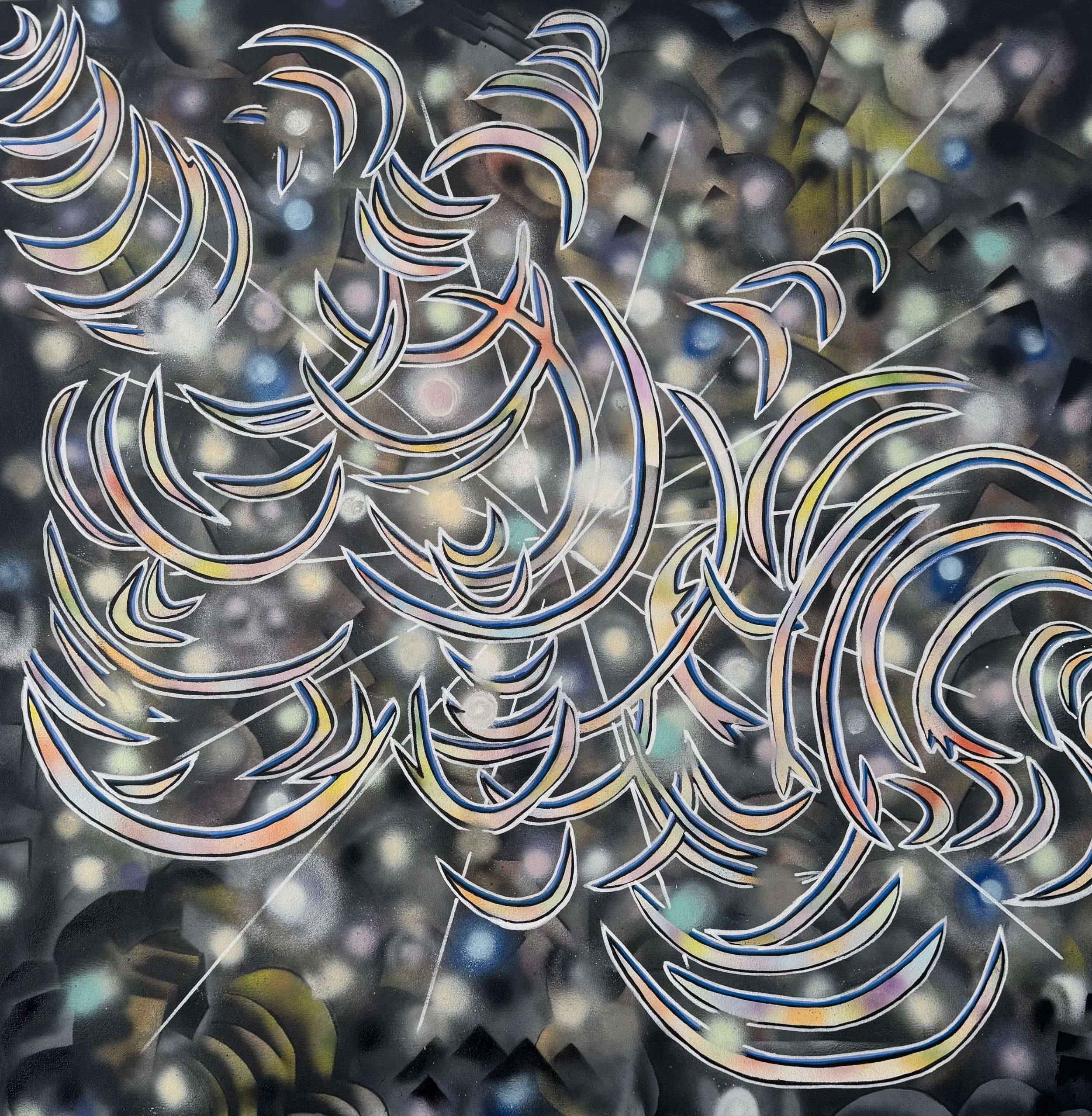 VIBRATION Acrylic, pastel pencil on canvas 44 x 44 inches, 2025