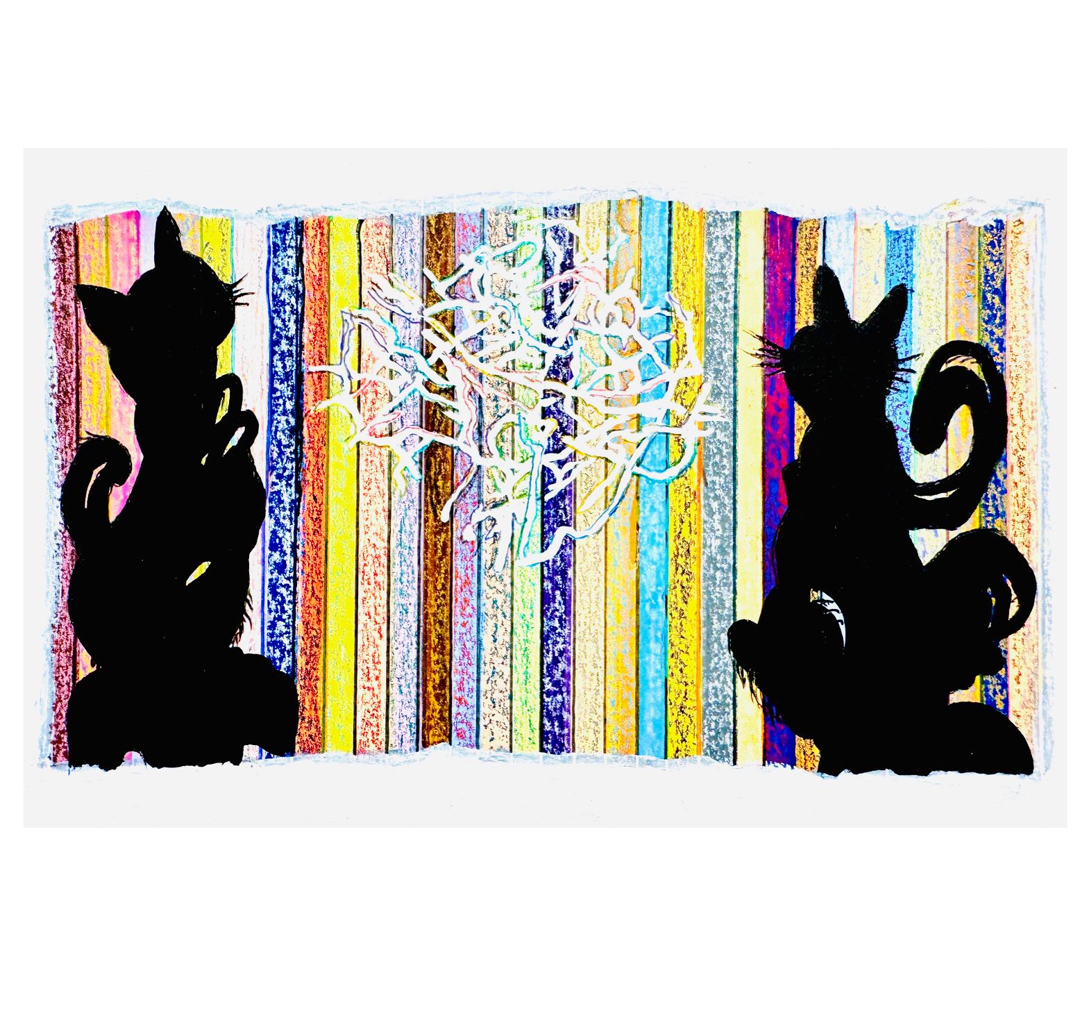 CATS WATCHING MODERN ART Acrylic, crayon and ink on paper, 5.5 x 8.5 inches 2025.